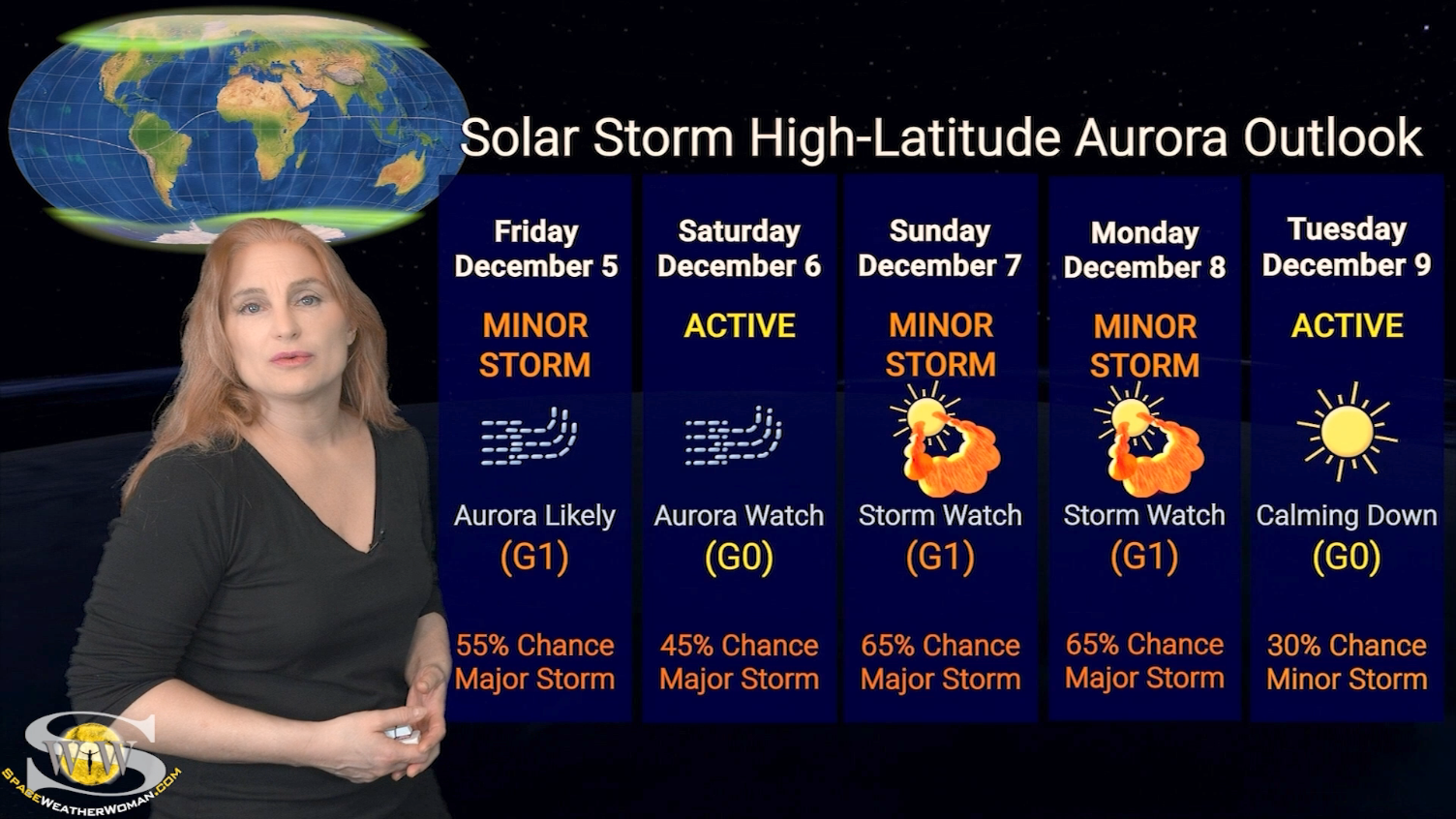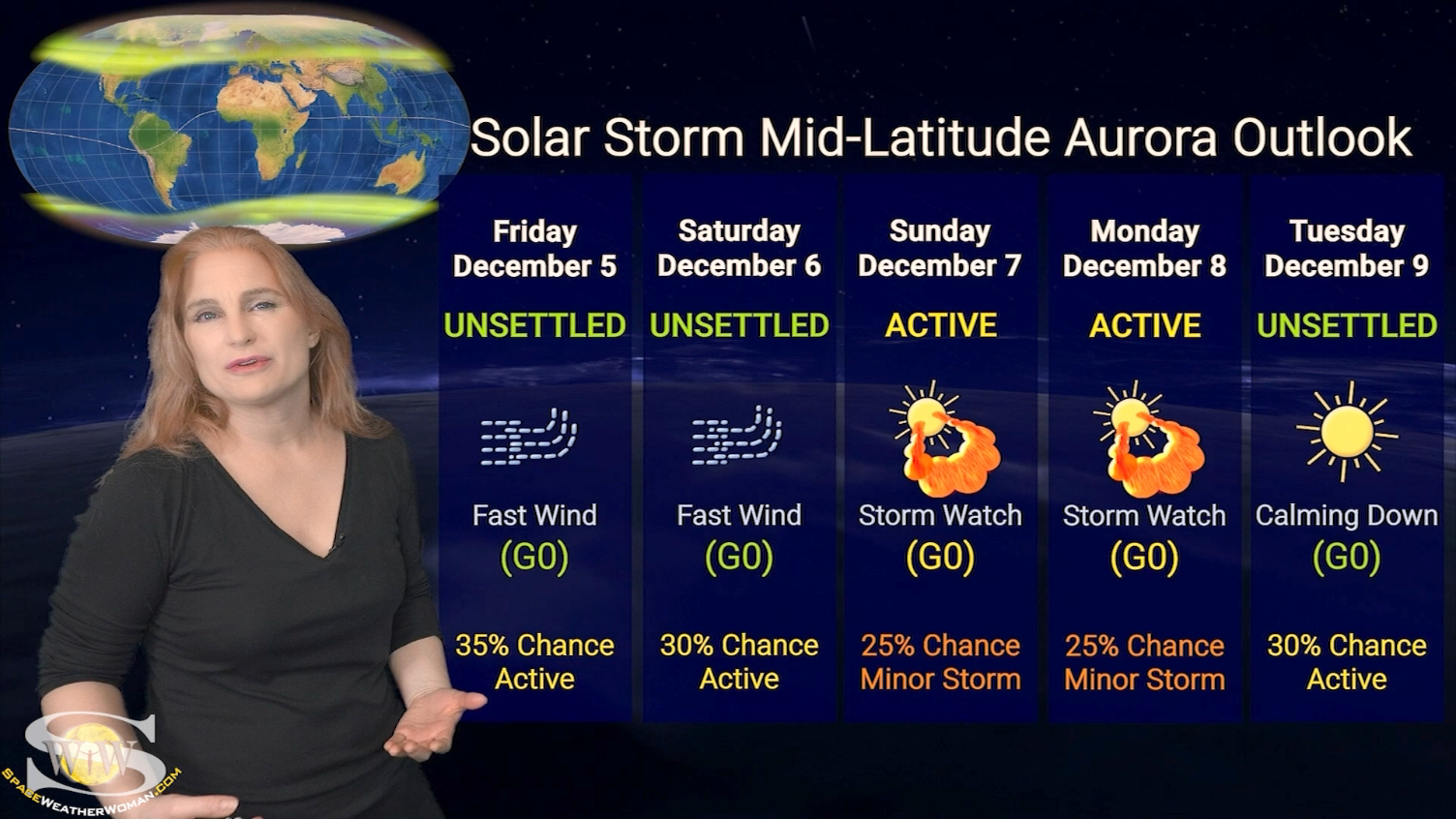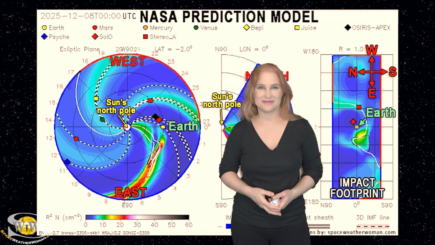 As for aurora photographers, those at high latitudes should be enjoying aurora views from a nice burst of fast solar wind. Although the fast wind had bumped us to G3-levels for a short while, mid-latitude aurora chasers might be disappointed at the fleeting shows. Sadly, this coronal hole is underperforming compared to last month, with slower wind, and an overall shorter duration due to the hole being slightly smaller than it was last month. That being said, one of the recent solar storm launches took part of the overlying field “cover” off the coronal hole western edge. In effect, this made the coronal hole larger, and so the next time we see this region (in about 28 days from now) we could see a stronger fast wind stream again. Wild to think that a solar storm blast can enlarge a coronal hole, but indeed it can!
