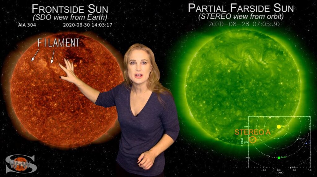 This week our Sun continues its upward climb in activity with multiple new bright regions on the Earth-facing disk, including a new sunspot region (region 2778). On top of this we finally had that massive snake-like filament that we first saw in STEREO-A’s view on the far side of the Sun launch as a non-Earth directed solar storm. Plus, we are also in the middle of a solar storm due to the fast wind from the northern coronal hole. This storm, which will likely rage for a few more days before settling down, has already brought aurora down to mid-latitudes, and there is a good chance more is to come! Learn the details of the current storm conditions, see where that snake-like filament launch is headed, watch region 2778 emerge and learn what else our Sun has in store this week.
