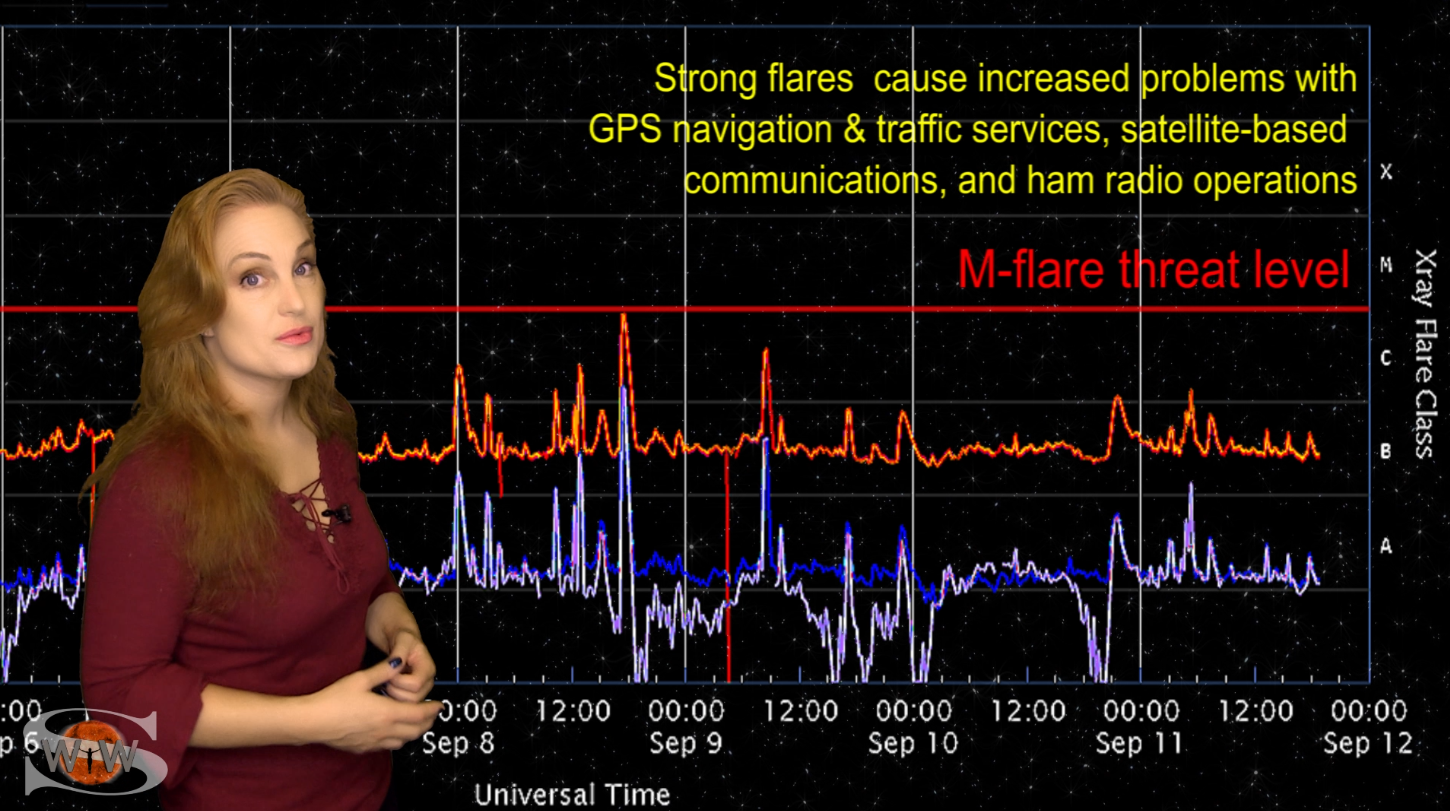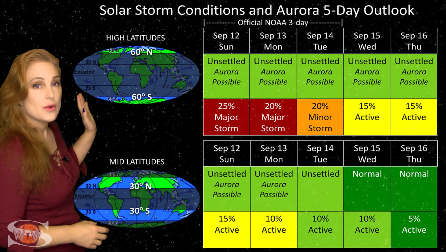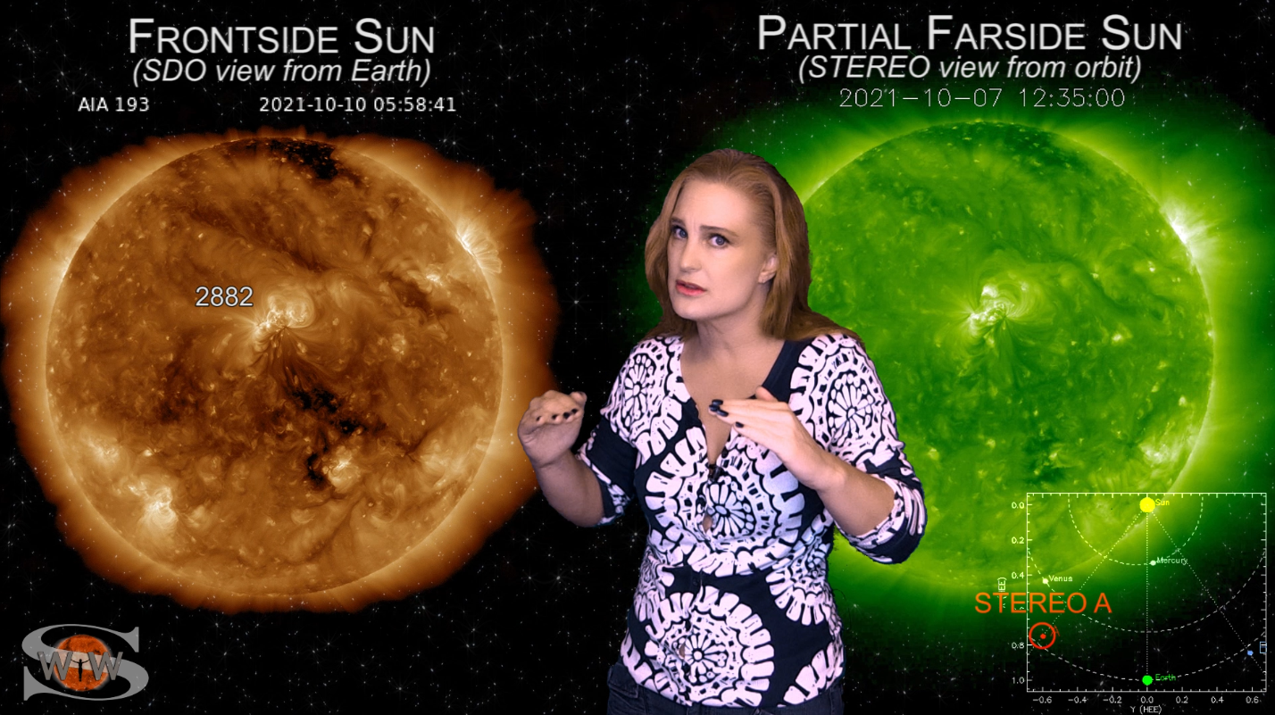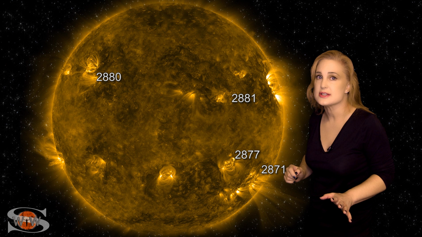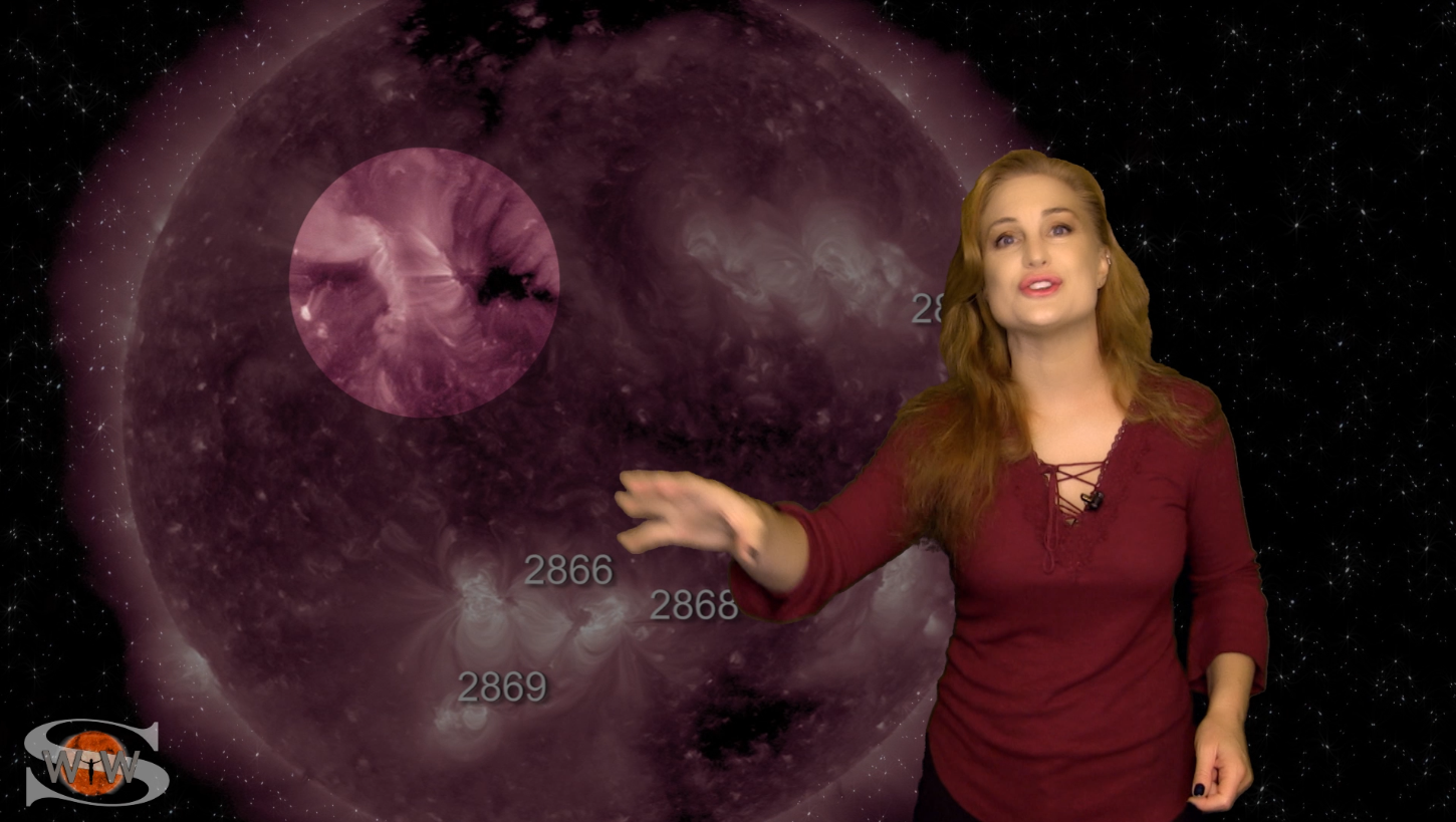 This week we say “goodbye” to region 2891, the last of the Big Flare Players that caused the fireworks we saw last week, and “hello” to some peace and quiet. Although region 2895 is showing a little bit of activity, it is not yet filling the footsteps of it’s predecessors. However, we are watching it for signs of growth. Meanwhile, just as region 2891 begins to rotate out of view, it fires off a goodbye kiss with an M2-class flare and a solar storm. Luckily, the solar storm is not Earth-directed. However, this region may retain it’s strong flare potential as it transits the Sun’s farside. If it survives it’s farside passage we could be in for big flares again in about two weeks time so amateur radio operators and GPS should enjoy the peace and quiet while it lasts. Aurora photographers at high latitudes get a slight chance for aurora this week with a small pocket of fast solar wind, but those at mid-latitudes will likely need to wait by the sidelines for some stronger fast solar wind, which will come in about 10 days from a better formed coronal hole that is just beginning to rotate into Earth view. See region 2891 fire off it’s “goodbye kiss,” learn how far aurora dipped down into mid-latitudes during the recent solar storm, and see what else our Sun has in store! Want early access to these forecasts, tutorials on Space Weather, & more? Visit: https://patreon.com/SpaceweatherWoman
