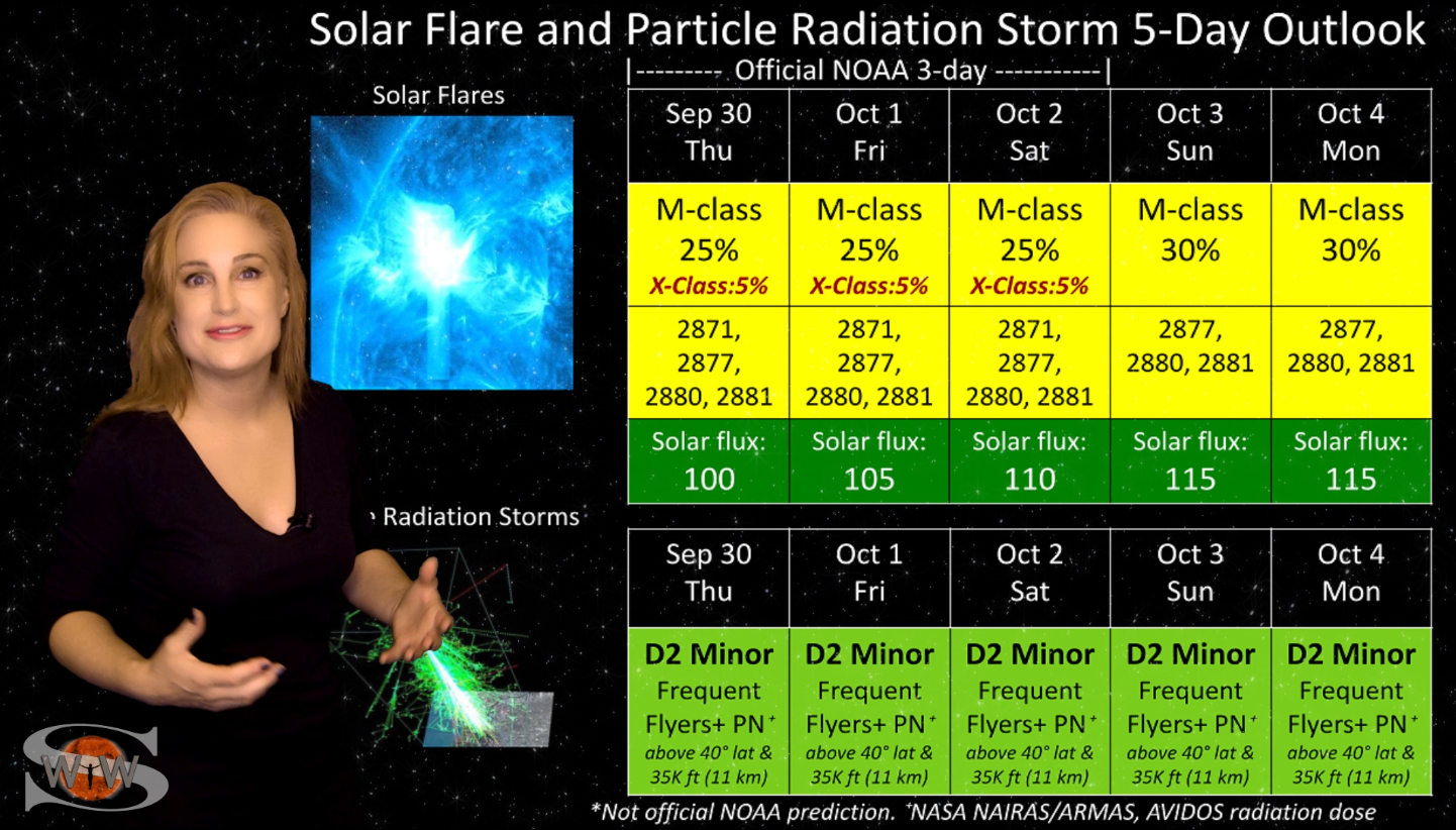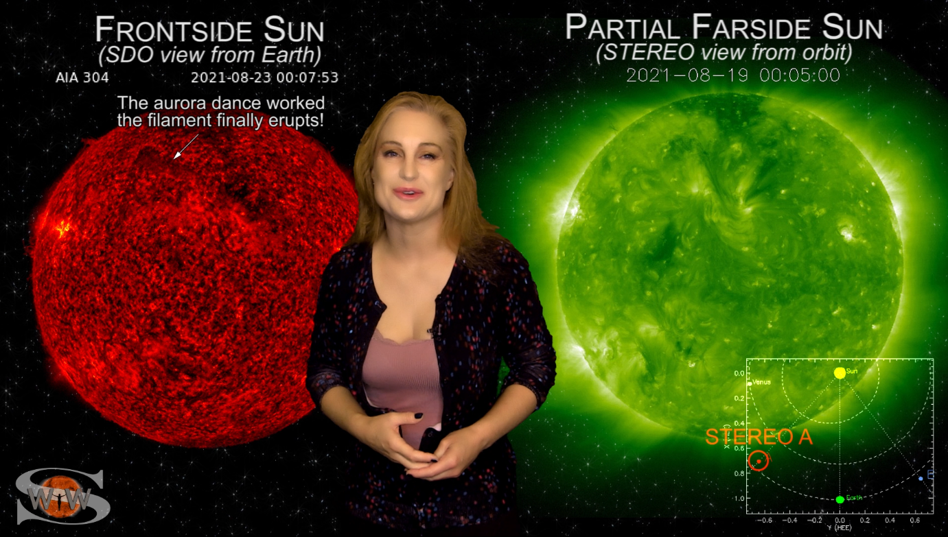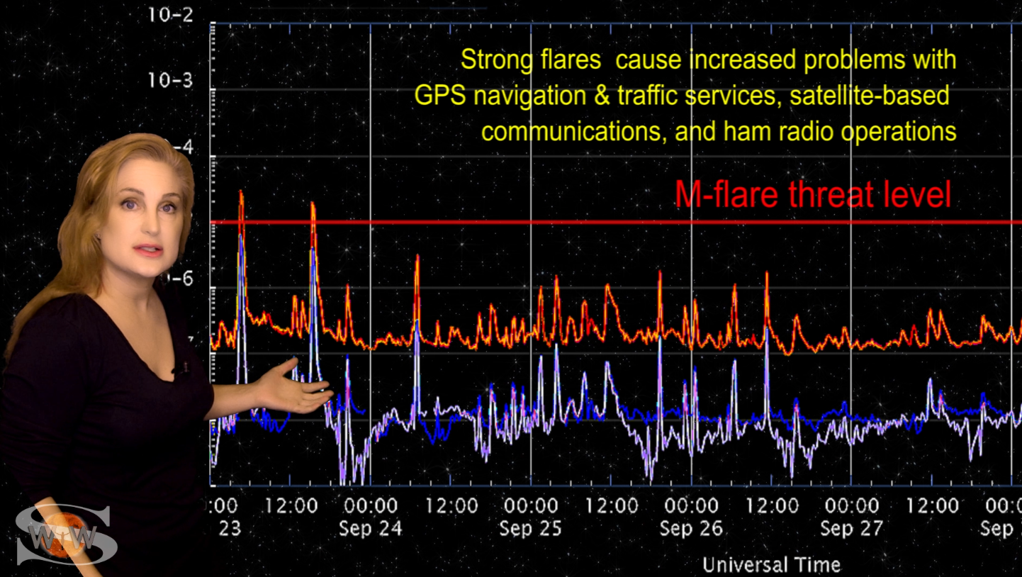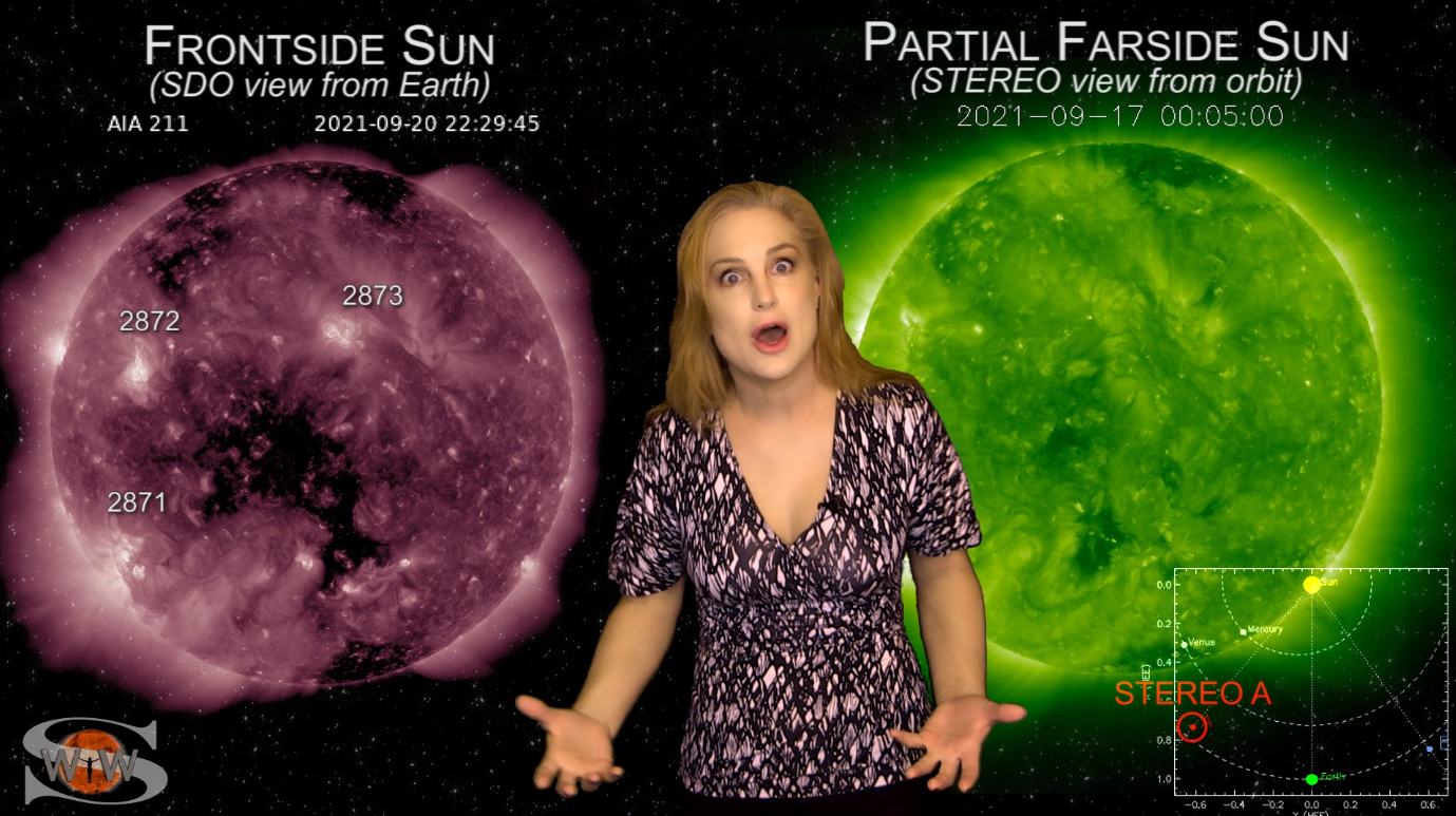 This week we say “goodbye” to region 2891, the last of the Big Flare Players that caused the fireworks we saw last week, and “hello” to some peace and quiet. Although region 2895 is showing a little bit of activity, it is not yet filling the footsteps of it’s predecessors. However, we are watching it for signs of growth. Meanwhile, just as region 2891 begins to rotate out of view, it fires off a goodbye kiss with an M2-class flare and a solar storm. Luckily, the solar storm is not Earth-directed. However, this region may retain it’s strong flare potential as it transits the Sun’s farside. If it survives it’s farside passage we could be in for big flares again in about two weeks time so amateur radio operators and GPS should enjoy the peace and quiet while it lasts. Aurora photographers at high latitudes get a slight chance for aurora this week with a small pocket of fast solar wind, but those at mid-latitudes will likely need to wait by the sidelines for some stronger fast solar wind, which will come in about 10 days from a better formed coronal hole that is just beginning to rotate into Earth view. See region 2891 fire off it’s “goodbye kiss,” learn how far aurora dipped down into mid-latitudes during the recent solar storm, and see what else our Sun has in store! Want early access to these forecasts, tutorials on Space Weather, & more? Visit: https://patreon.com/SpaceweatherWoman