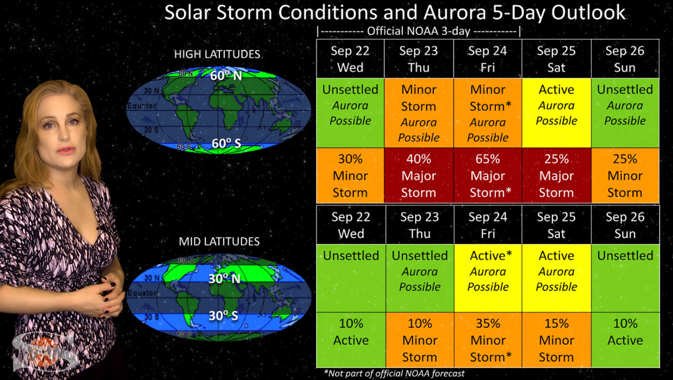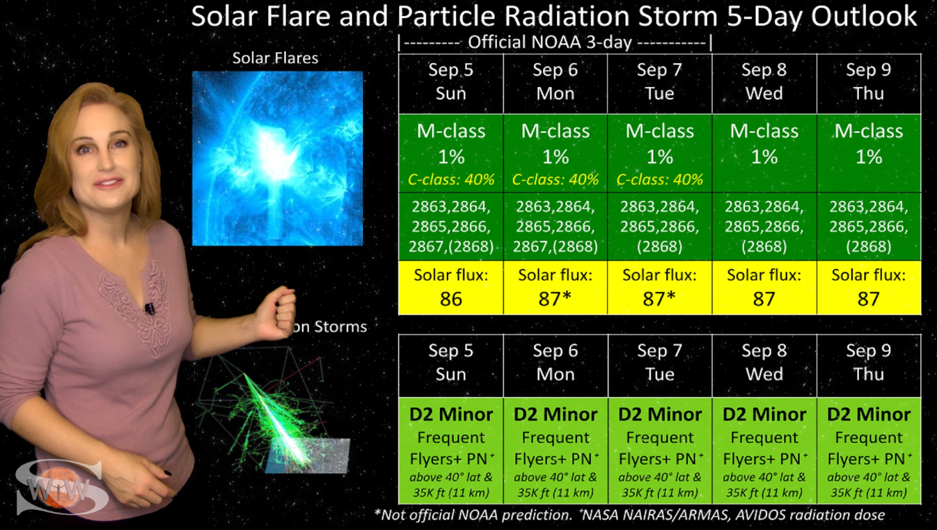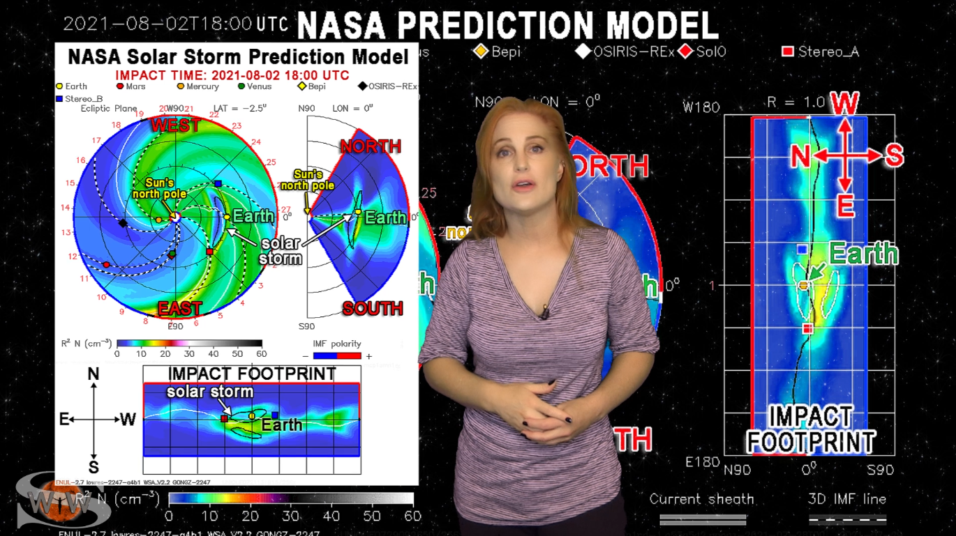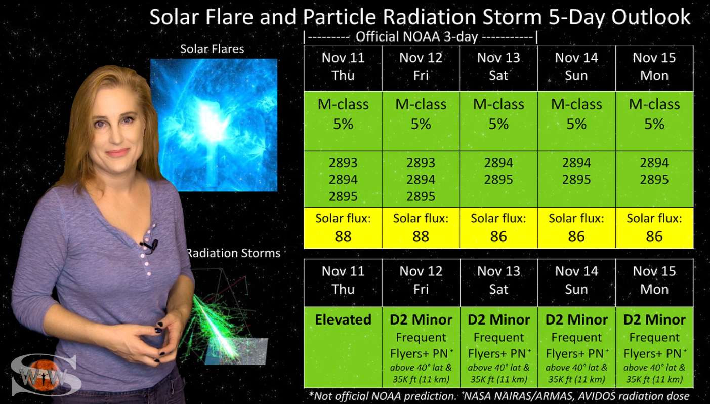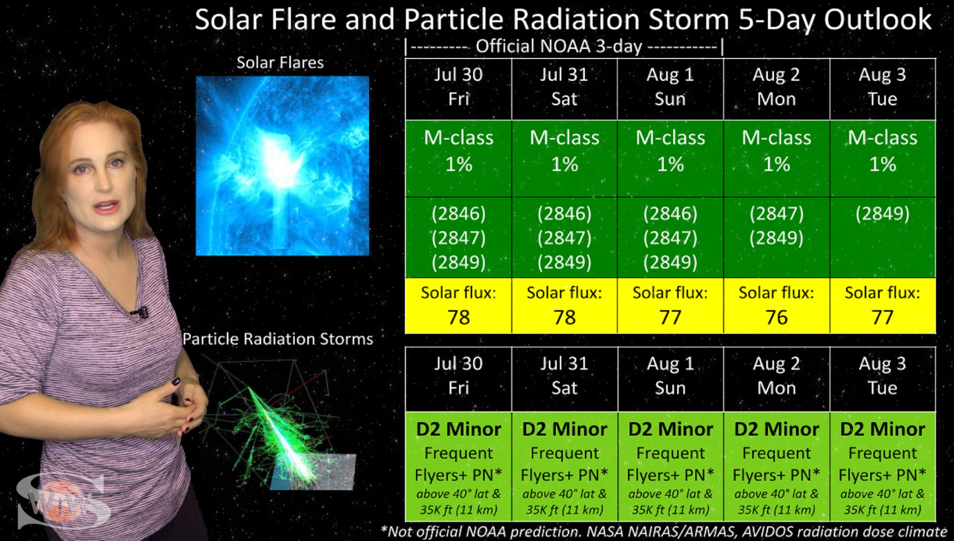This week we say “goodbye” to region 2891, the last of the Big Flare Players that caused the fireworks we saw last week, and “hello” to some peace and quiet. Although region 2895 is showing a little bit of activity, it is not yet filling the footsteps of it’s predecessors. However, we are watching it for signs of growth. Meanwhile, just as region 2891 begins to rotate out of view, it fires off a goodbye kiss with an M2-class flare and a solar storm. Luckily, the solar storm is not Earth-directed. However, this region may retain it’s strong flare potential as it transits the Sun’s farside. If it survives it’s farside passage we could be in for big flares again in about two weeks time so amateur radio operators and GPS should enjoy the peace and quiet while it lasts. Aurora photographers at high latitudes get a slight chance for aurora this week with a small pocket of fast solar wind, but those at mid-latitudes will likely need to wait by the sidelines for some stronger fast solar wind, which will come in about 10 days from a better formed coronal hole that is just beginning to rotate into Earth view. See region 2891 fire off it’s “goodbye kiss,” learn how far aurora dipped down into mid-latitudes during the recent solar storm, and see what else our Sun has in store! Want early access to these forecasts, tutorials on Space Weather, & more? Visit: https://patreon.com/SpaceweatherWoman