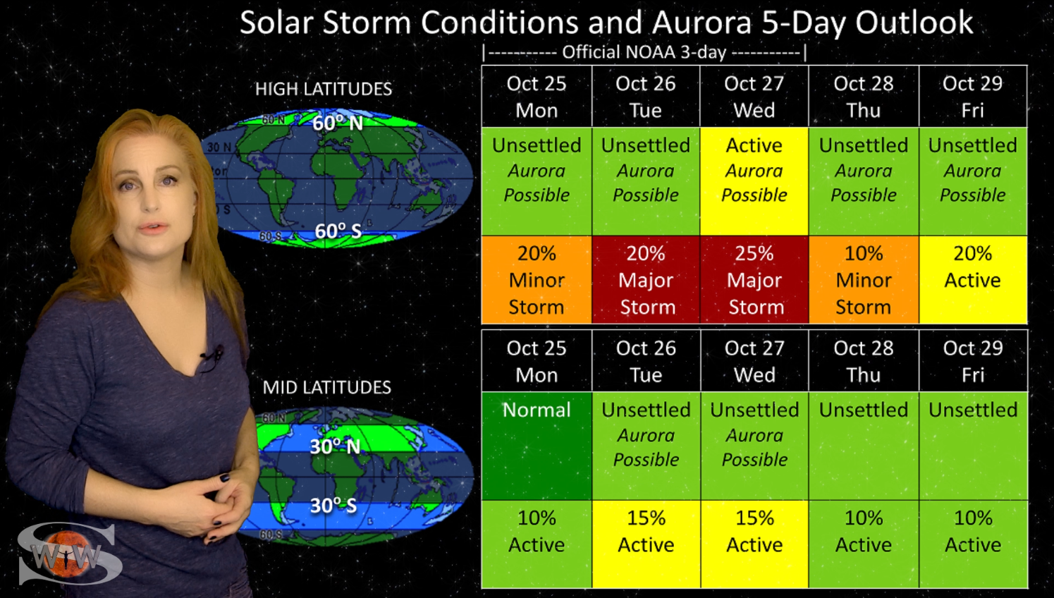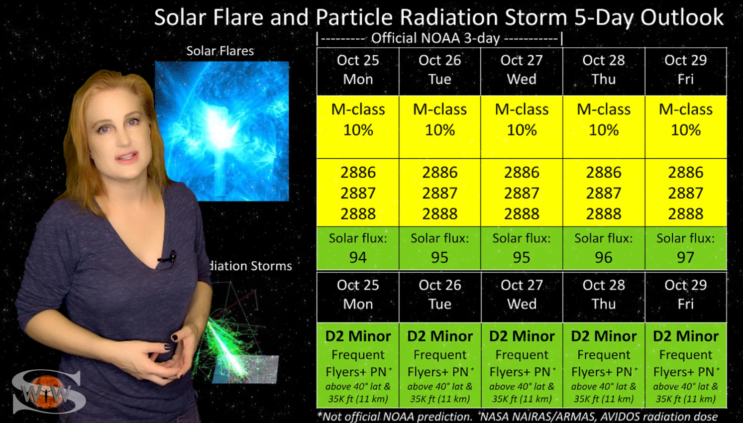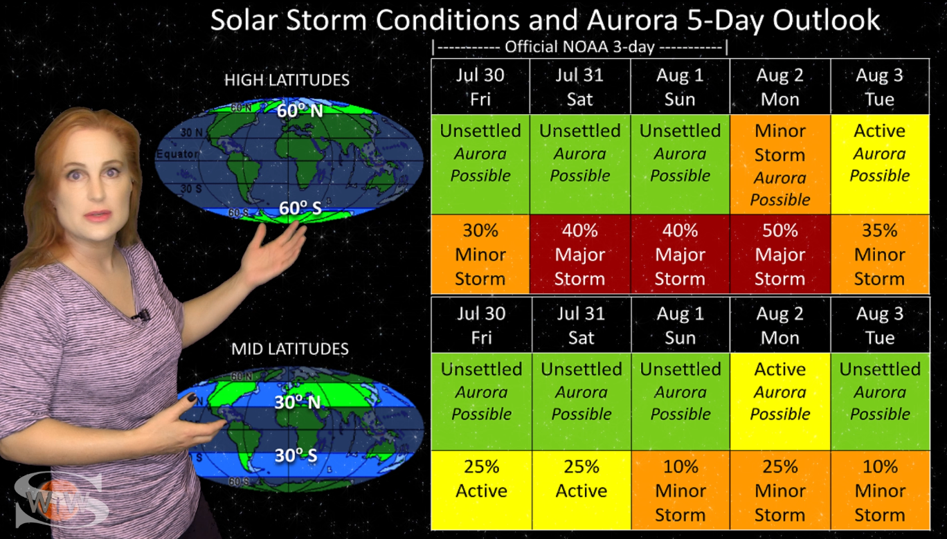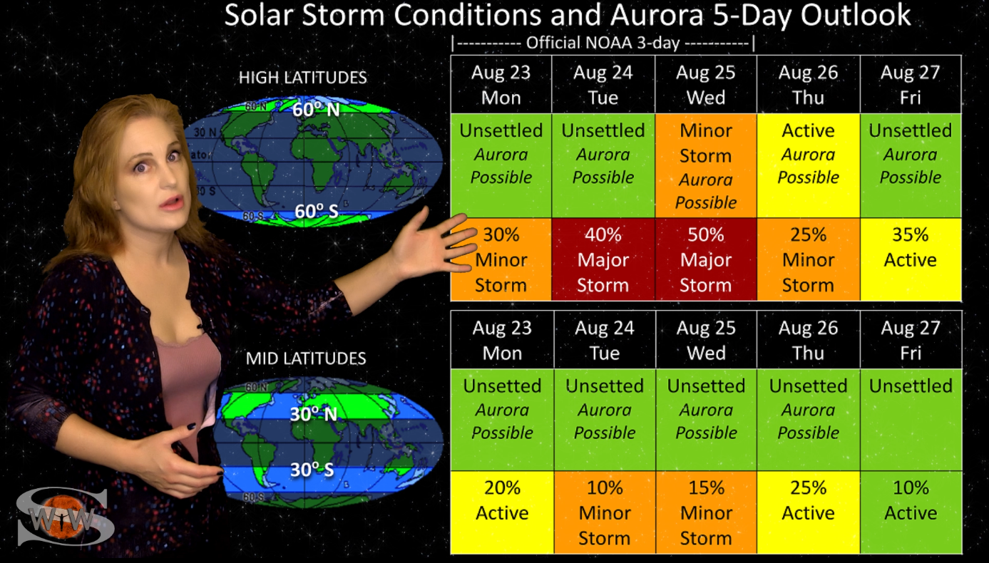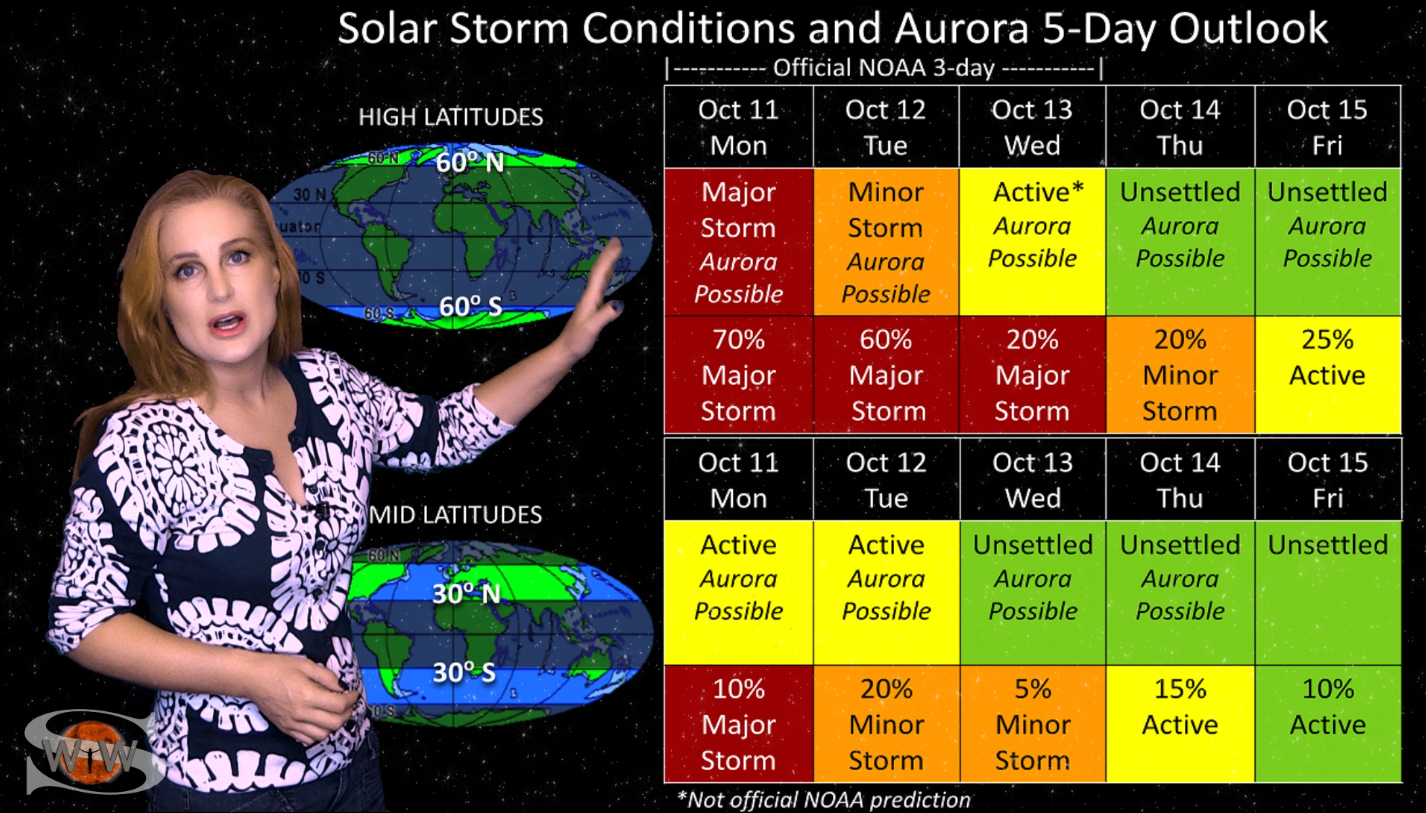 This week we say “goodbye” to region 2891, the last of the Big Flare Players that caused the fireworks we saw last week, and “hello” to some peace and quiet. Although region 2895 is showing a little bit of activity, it is not yet filling the footsteps of it’s predecessors. However, we are watching it for signs of growth. Meanwhile, just as region 2891 begins to rotate out of view, it fires off a goodbye kiss with an M2-class flare and a solar storm. Luckily, the solar storm is not Earth-directed. However, this region may retain it’s strong flare potential as it transits the Sun’s farside. If it survives it’s farside passage we could be in for big flares again in about two weeks time so amateur radio operators and GPS should enjoy the peace and quiet while it lasts. Aurora photographers at high latitudes get a slight chance for aurora this week with a small pocket of fast solar wind, but those at mid-latitudes will likely need to wait by the sidelines for some stronger fast solar wind, which will come in about 10 days from a better formed coronal hole that is just beginning to rotate into Earth view. See region 2891 fire off it’s “goodbye kiss,” learn how far aurora dipped down into mid-latitudes during the recent solar storm, and see what else our Sun has in store! Want early access to these forecasts, tutorials on Space Weather, & more? Visit: https://patreon.com/SpaceweatherWoman