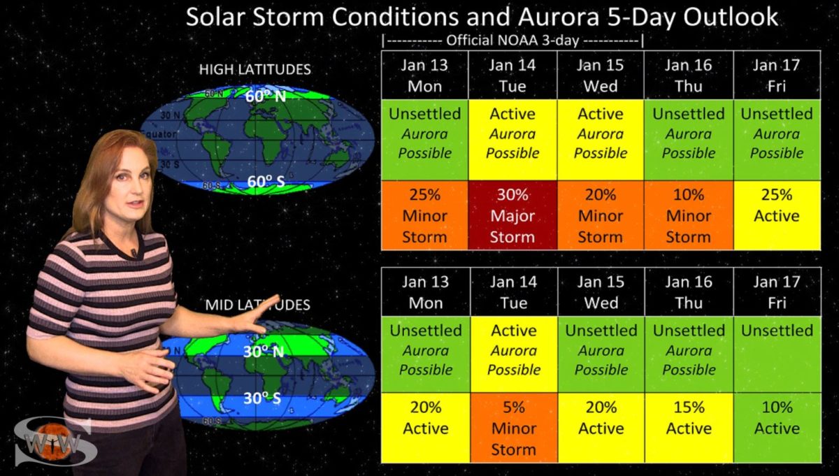 This week our Sun returns to spotless, but not before it gave us yet another new cycle sunspot, region 2756. That region has since rotated behind the Sun’s west limb, however, we still have several bright regions in Earth view so the solar flux remains in the marginal range for radio propagation. On top of this we have a small coronal hole that will be rotating through the Earth-strike zone over the next few days and sending us some fast wind. This could bring us some aurora views, possibly down to mid-latitudes briefly. Aurora views at high latitudes should last until the weekend. Since we recently had a weak solar storm hit, this means the near-Earth environment is a bit wound-up so satellites and other space traffic in and near GEO orbits have a slightly elevated risk of surface charging over the next few days. Learn the details of the coming fast solar wind, including how it will affect you, and see what else our Sun has in store!
